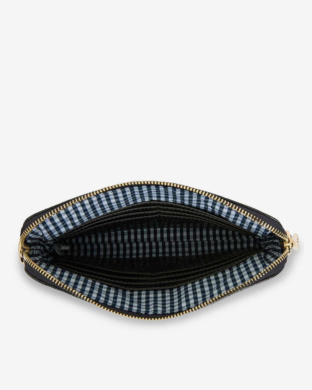 The Elms+King Bowery Wallet offers the functionality of a wallet, with the hands-free ease of a crossbody bag. Made from 100% recycled premium polyurethane with 14-karat light gold-plated hardware, the Bowery Wallet has space inside for 12 credit cards and two open top slip pockets. With its adjustable/removable crossbody strap, this piece can be used as a compact clutch, shoulder bag or crossbody bag.