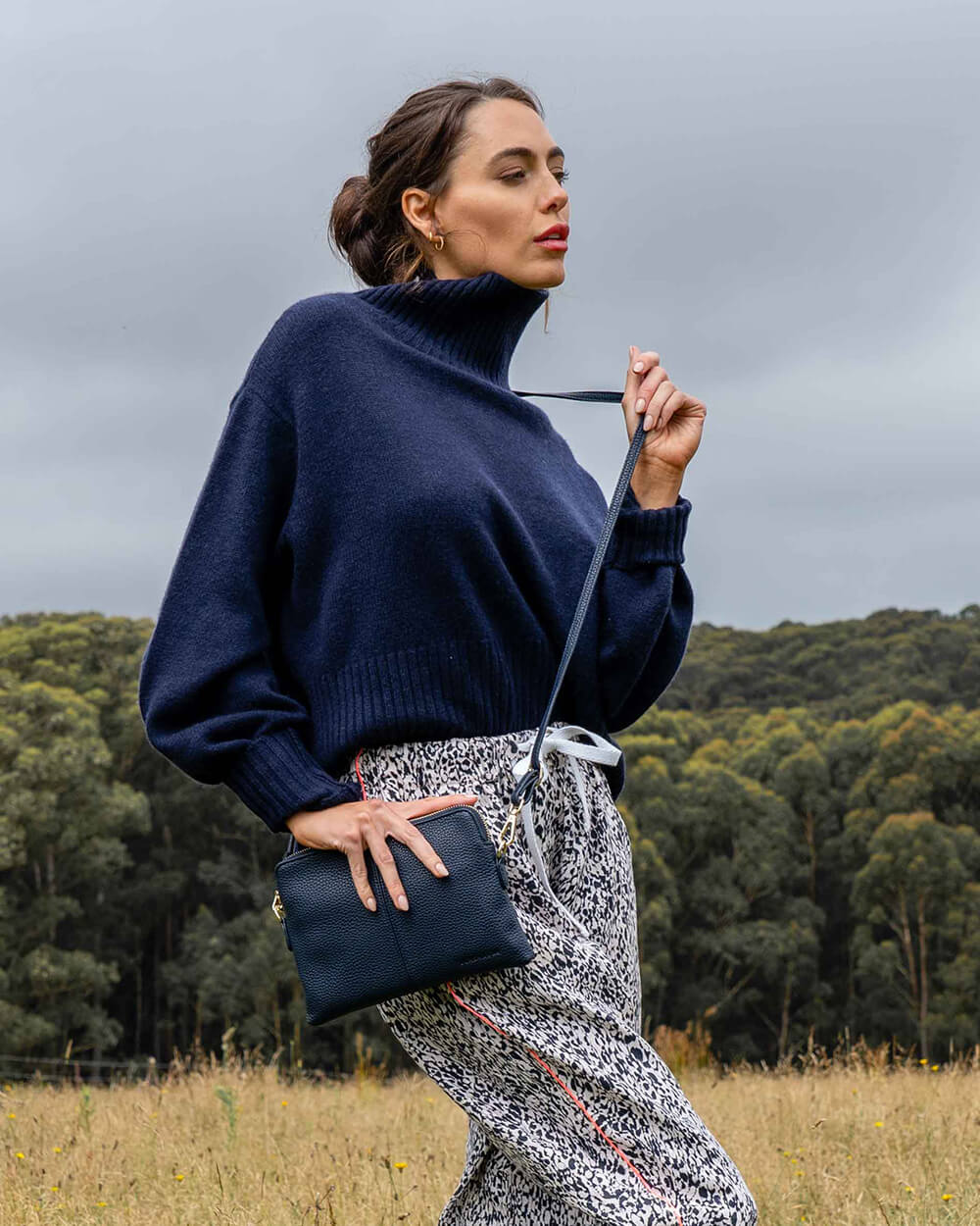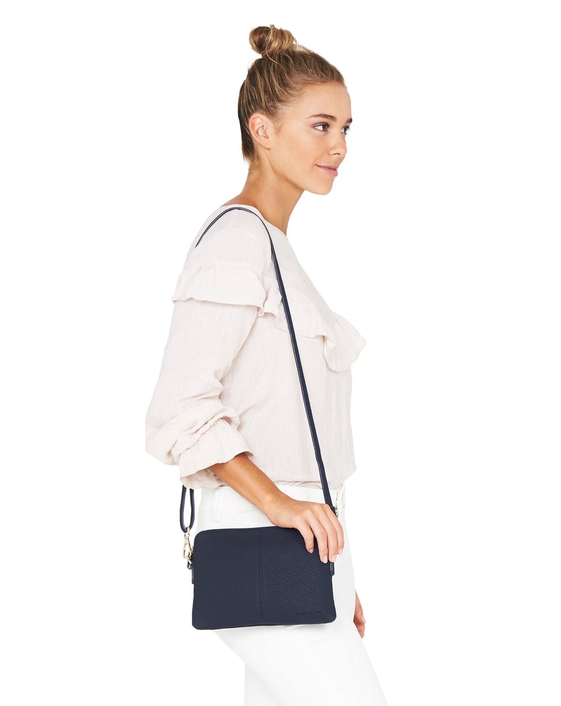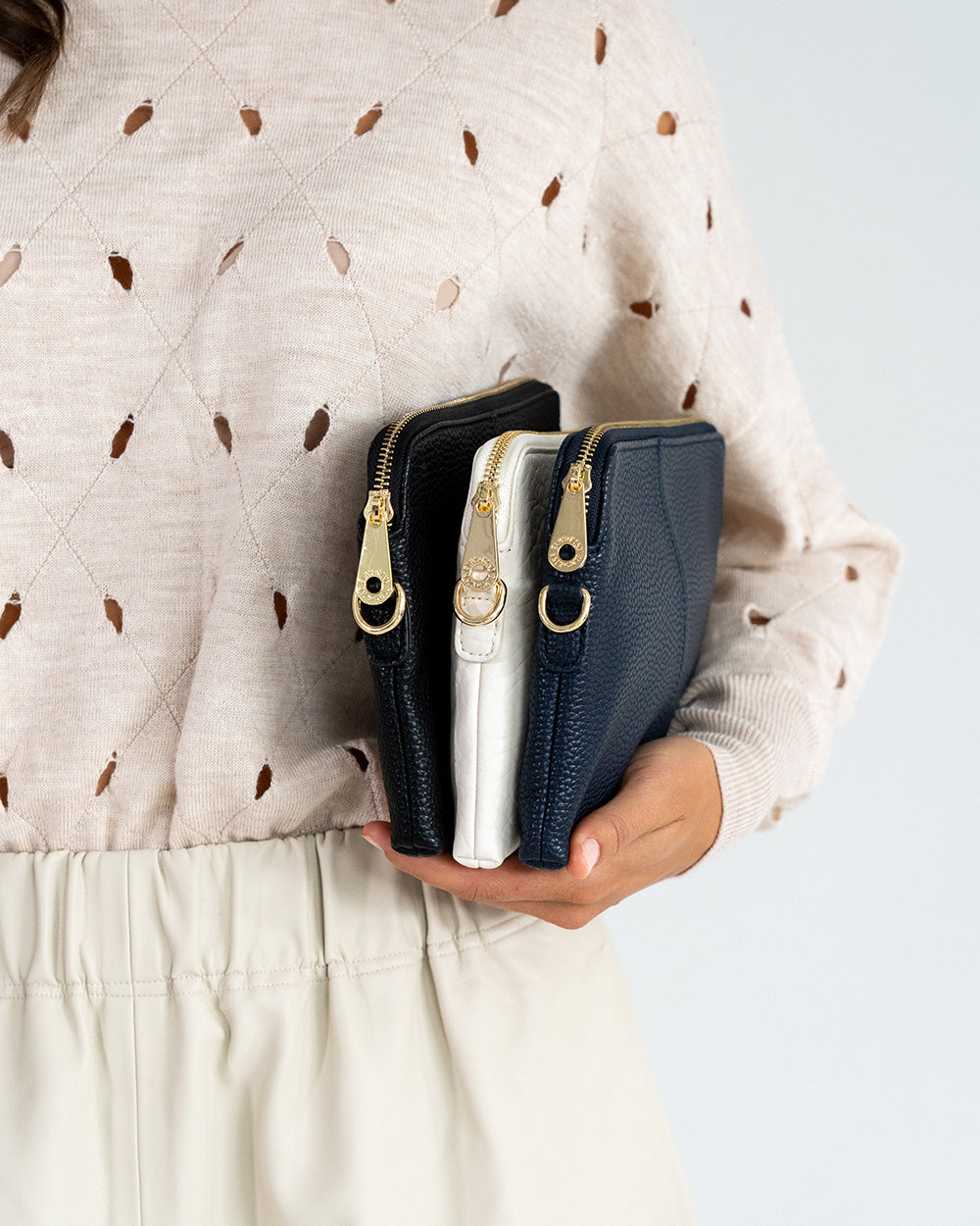 The Elms+King Bowery Wallet offers the functionality of a wallet, with the hands-free ease of a crossbody bag. Made from 100% recycled premium polyurethane with 14-karat light gold-plated hardware, the Bowery Wallet has space inside for 12 credit cards and two open top slip pockets. With its adjustable/removable crossbody strap, this piece can be used as a compact clutch, shoulder bag or crossbody bag.