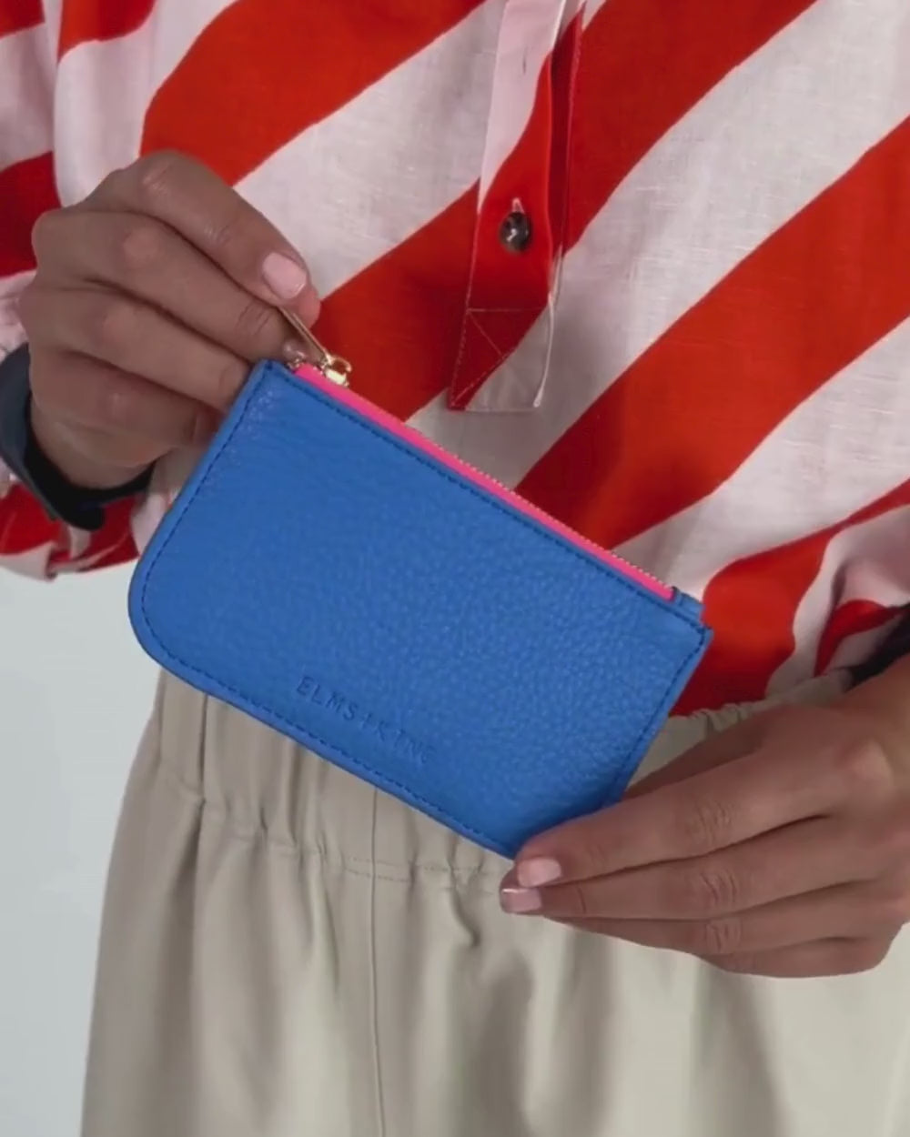 The Elms+King Centro Wallet is made from recycled premium polyurethane, with a slim line construction. The wallet features a top zipper closure, centre pocket and 8 rear mounted card slots.