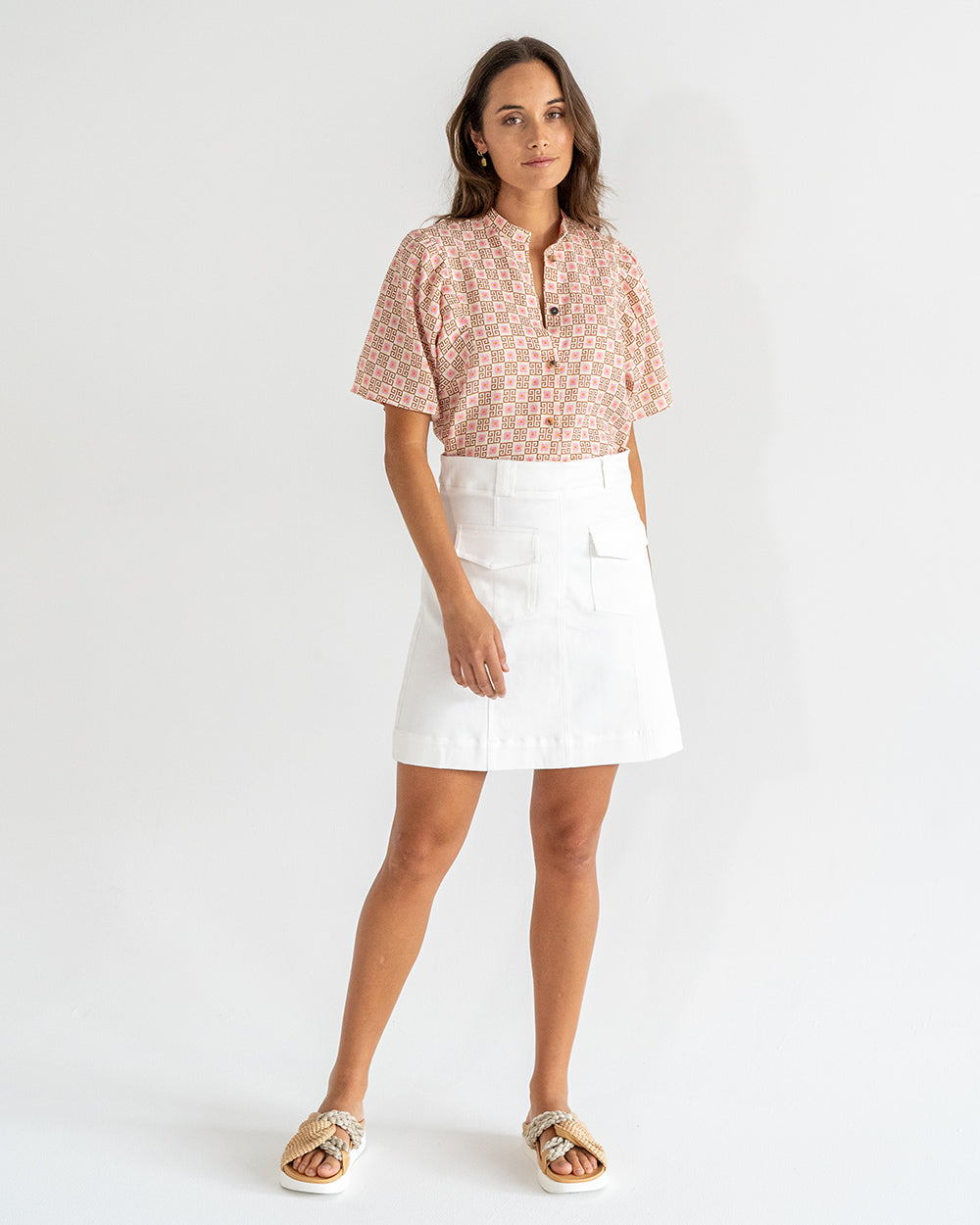 The Lincoln Mini Skirt is a must-have addition to your wardrobe for both style and practicality. The A-line silhouette flatters any figure, while utility-sty... See more