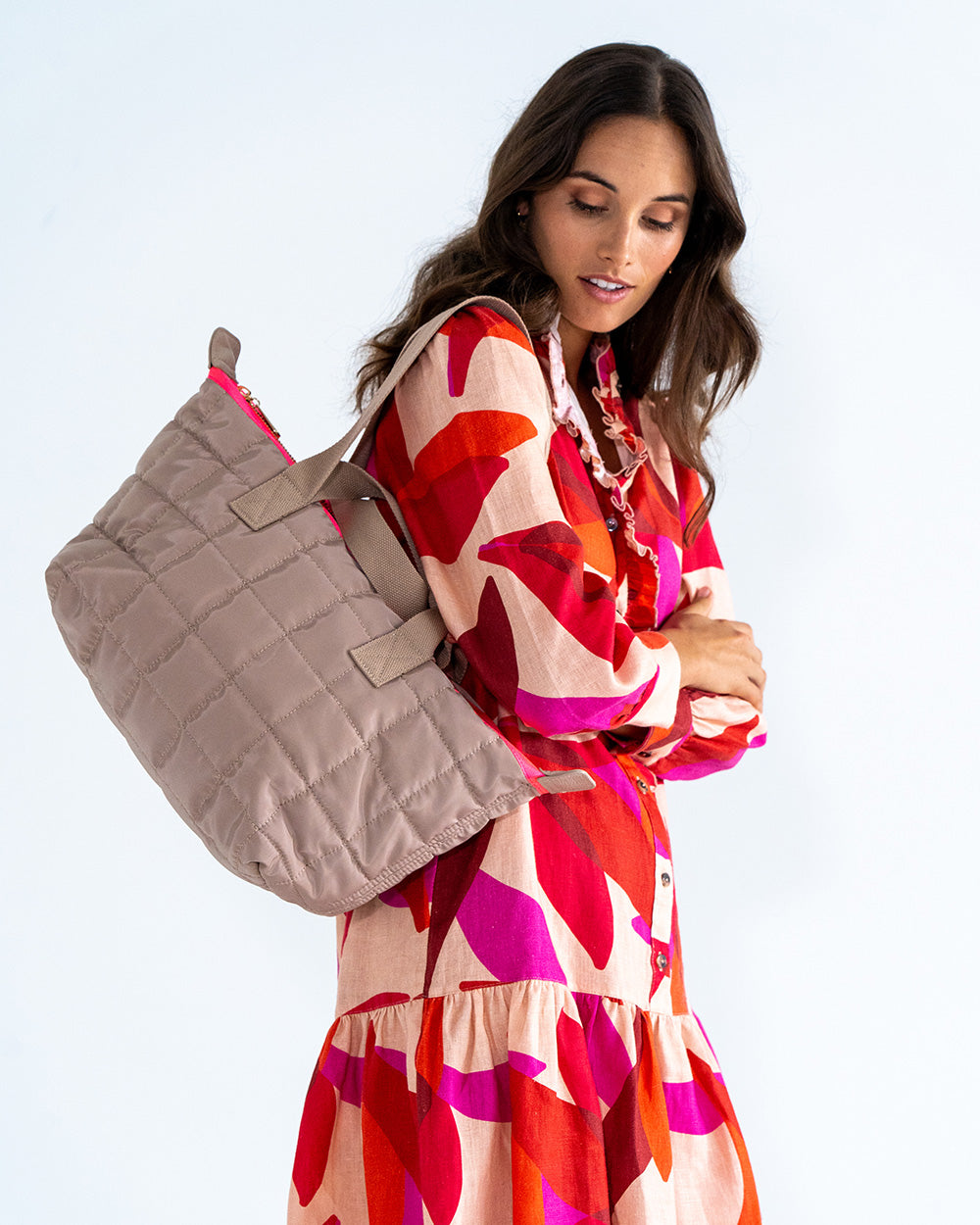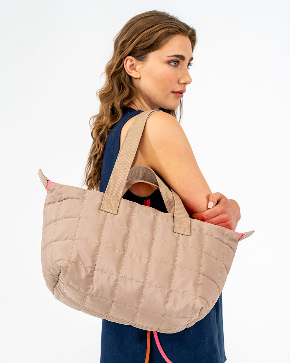The Mini Spencer Carry All is the stylish accessory we have all been dreaming of. With its two top-grip handles of varying drop height and an internal zip-pocket for ease of access, this Mini Carry All can be used as a gym bag or a flight bag, a baby bag or an everyday bag. It's the perfect accessory for those who are always on the move. Made from premium quilted nylon with 14-karat light gold-plated hardware, the Mini Spencer Carry All features nylon lining in an accent tone.